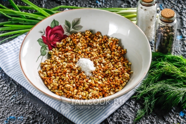 Пересыпьте крупу в глубокую емкость для микроволновой печи, всыпьте соль по вкусу.