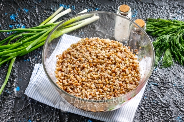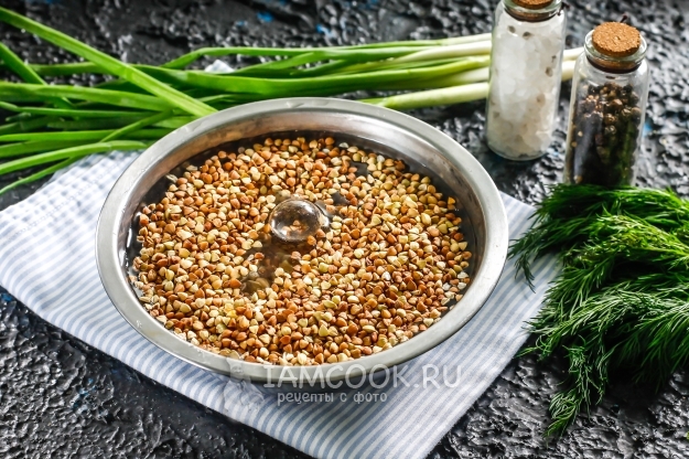 Гречневую крупу переберите, удаляя черные зернышки. Всыпьте в глубокую миску и залейте холодной водой, промойте несколько раз, воду слейте.