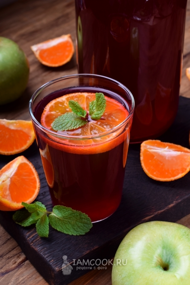 Если в готовый компот хочется добавить немного кислинки и свежего вкуса, подавайте его, добавив в стаканы свежие дольки мандарина.