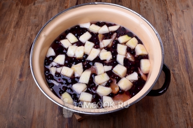 Варится компот быстро, 10-15 минут, но ему нужно настояться, чтобы вкус стал более насыщенным. Цвет напитка зависит от ягод, добавленных при варке. Я добавила черную смородину, она дала этот красивый цвет. Если добавить, например, клубнику или красную смородину, то компот получится более ярким. Выбор за Вами.