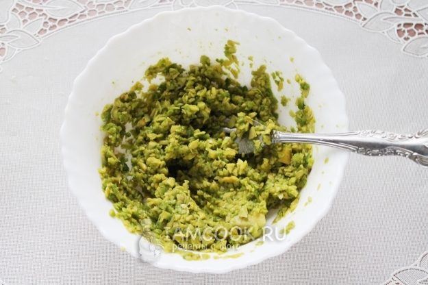 Разомните авокадо вилкой или измельчите блендером. Сбрызните лимонным соком.