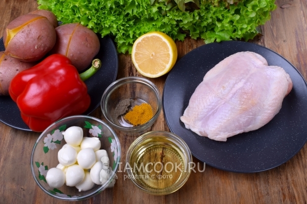 Подготовим ингредиенты для картофельного салата с печеным перцем и курицей.