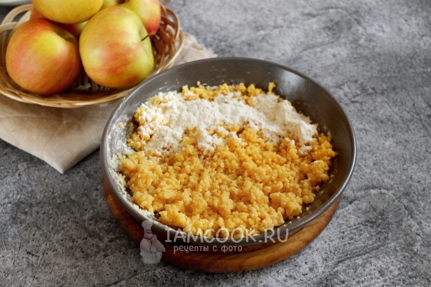 Перетираем до крошки, подсыпаем еще граммов 20 муки и замешиваем плотное пластичное тесто.
