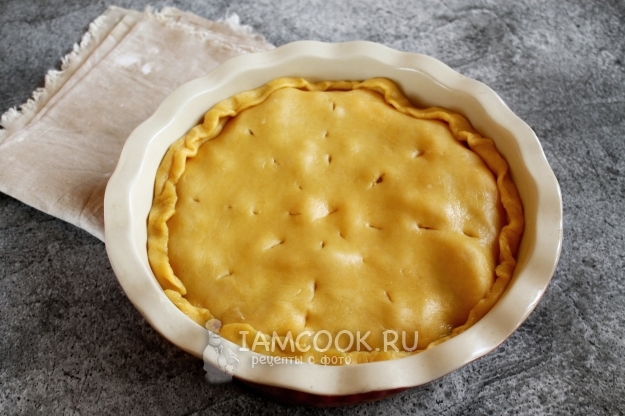 По окружности оформляем край (наружу или внутрь бортиком — как вам угодно). Ножом или вилкой оставляем разрезы/проколы для выхода пара. Выпекаем пирог «Тарт Татен» с яблоками в предварительно раскаленной духовке примерно 25 минут при температуре 200 градусов.