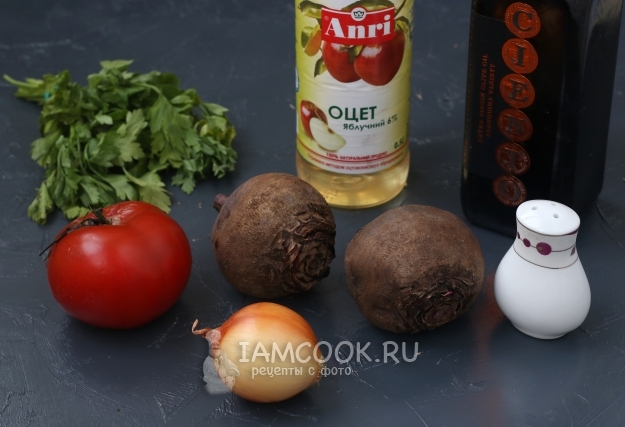 Для приготовления салата подготовить из списка необходимые продукты. Свеклу сразу же поставить вариться в кастрюльке до мягкости или запечь в духовке.