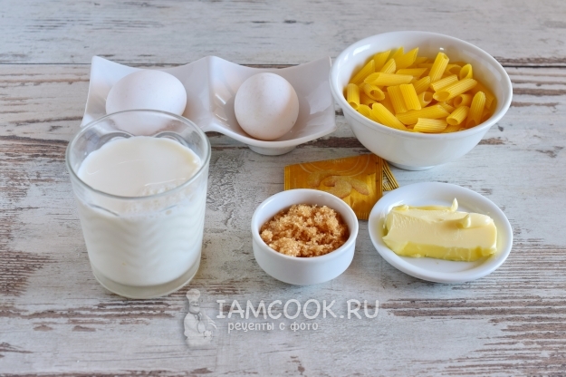 Подготовим все продукты по списку. Вместо обычного сахара можно взять коричневый, тогда запеканка получится с легким карамельным привкусом.