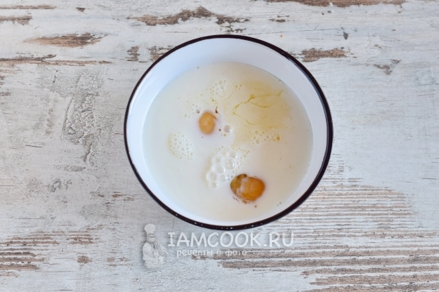 Вольем в миску молоко или сливки.