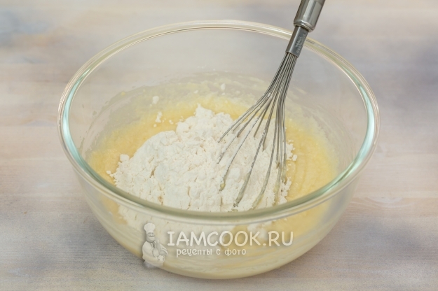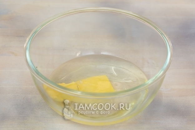 Смешать в миске размягченное сливочное масло, оливковое масло, воду, сахар, соль и соду. Размешать венчиком.