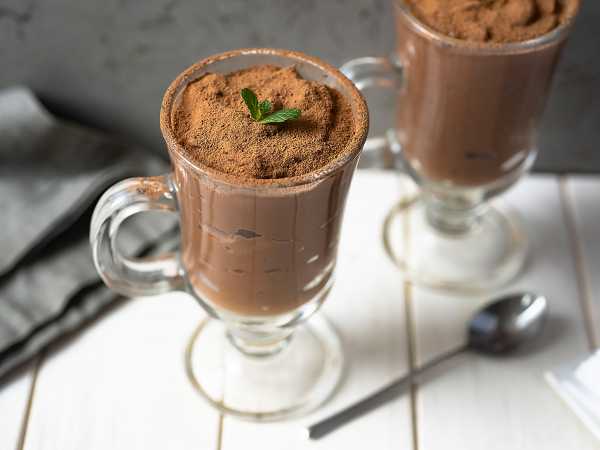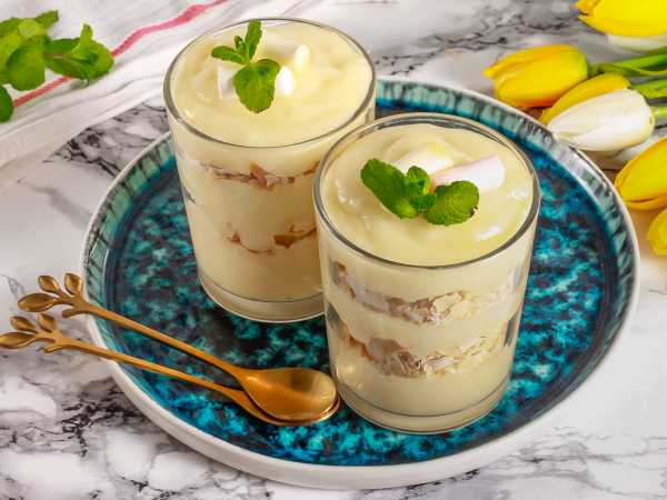 Украсьте десерт сверху замороженными ягодами и листиком мяты или базилика.