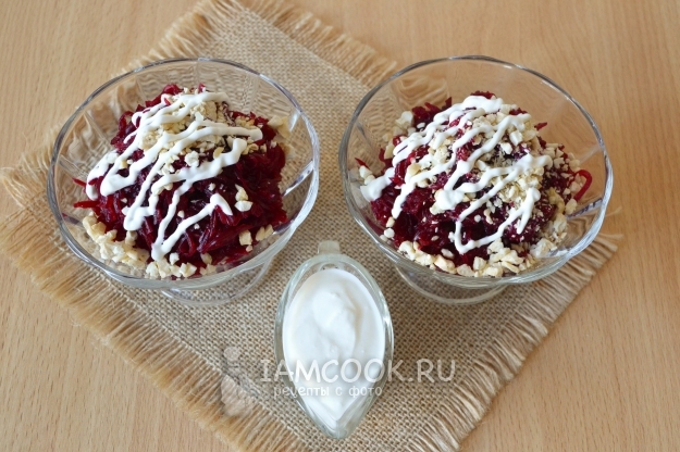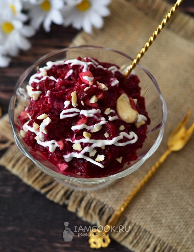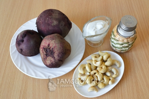 Богатые белком и большим количеством полиненасыщенных жирных кислот, магнием, калием, железом, фосфором, витаминами, обладающие антисептическими и антибактериальными свойствами, орешки кешью станут идеальным дополнением к нашему салатику из вареной свеклы.