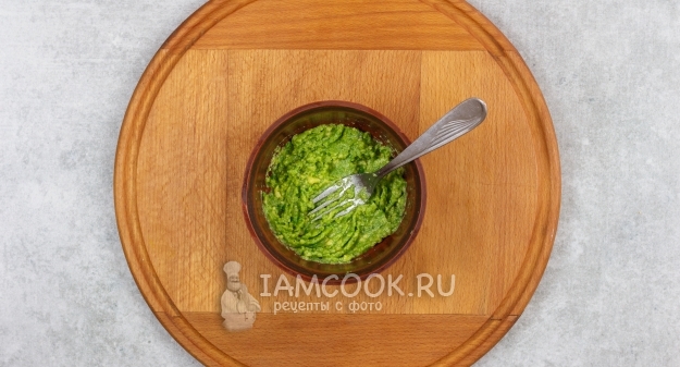 Разомните кусочки авокадо до состояния пюре, вилкой или другим подручным предметом.