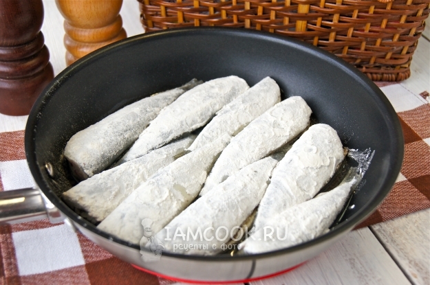 В пищевой пакет всыпьте муку, переложите салаку, зажмите край пакета и как следует встряхните пакет.