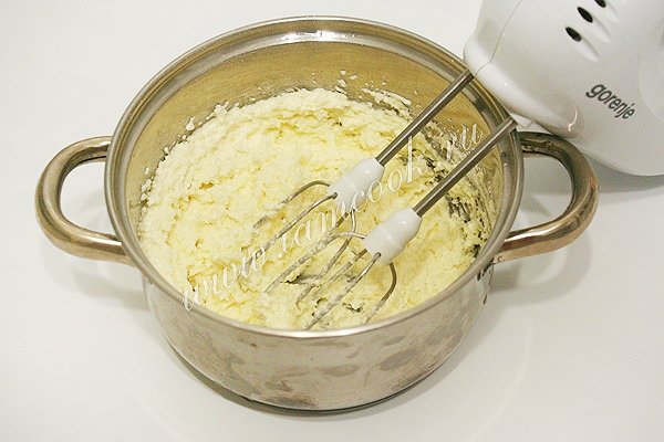 Взбейте сливочное масло комнатной температуры с сахарной пудрой. Добавьте кокосовую стружку и хорошо перемешайте или еще немного взбейте миксером.
