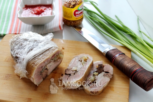 У меня рулька простояла под прессом ночь, на утро она свободно нарезалась и послужила замечательным воскресным завтраком. Муж три дня с этим аппетитным и вкусным рулетом пил чай, не признавая ничего другого.