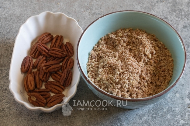 Откладываем в сторону штук 20 орехов пекан с идеальной поверхностью для декора нашего кленового пекана. Остаток измельчаем в не очень мелкую труху (калибром погрубее, чем ореховая мука).