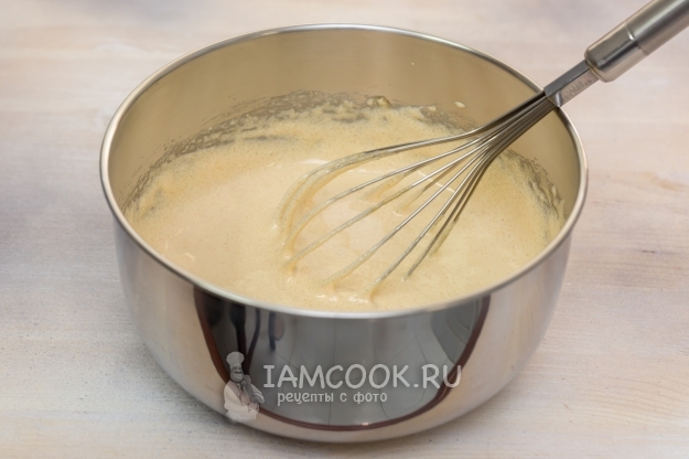 Желтки разотрите с сахаром добела. Удобно это делать венчиком.
