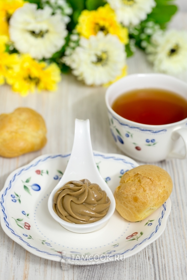Крем обладает ярко выраженным кофейным вкусом и ароматом. Подойдет как для профитролей, так и для тортов, корзиночек, да и просто так - с булкой - очень вкусно!