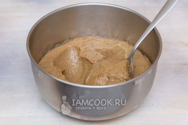 В миску с желтками добавьте треть кофейного молока и муку. Перемешайте, чтобы не было комочков.