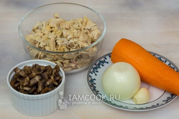 Для приготовления картофельного пюре с курицей и грибами подготовим продукты по списку.