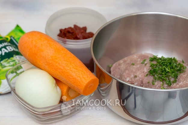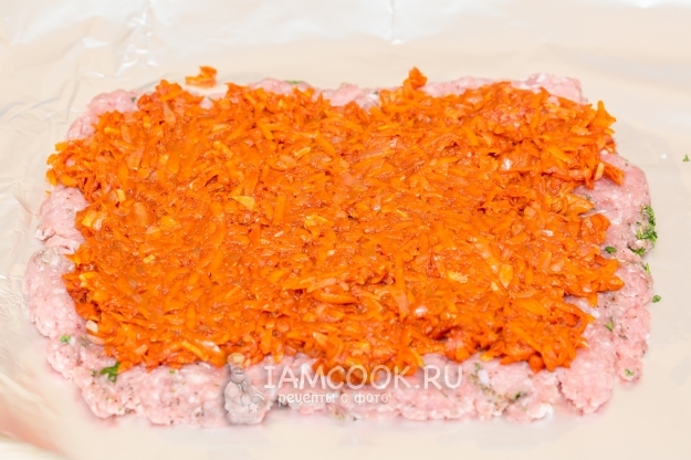 Для приготовления рулета из фарша с морковкой подготовим продукты по списку.