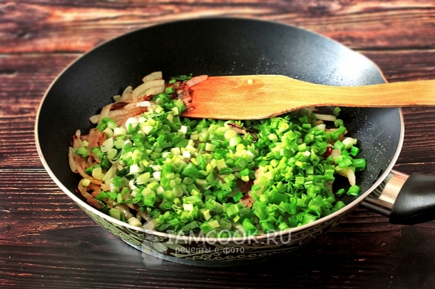Добавить к нему измельченный зеленый лук и убрать с огня.