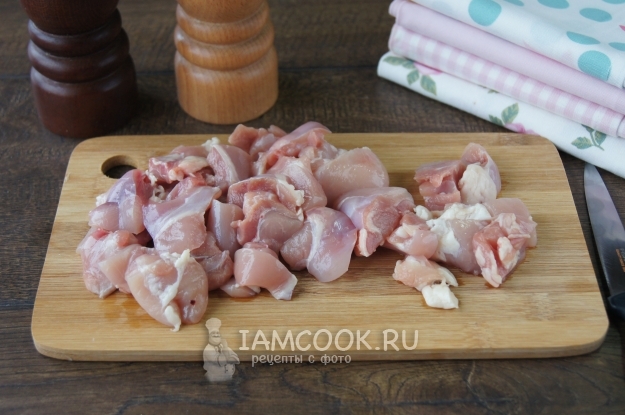 Мясо вымыла, обсушила и нарезала на средние кусочки.