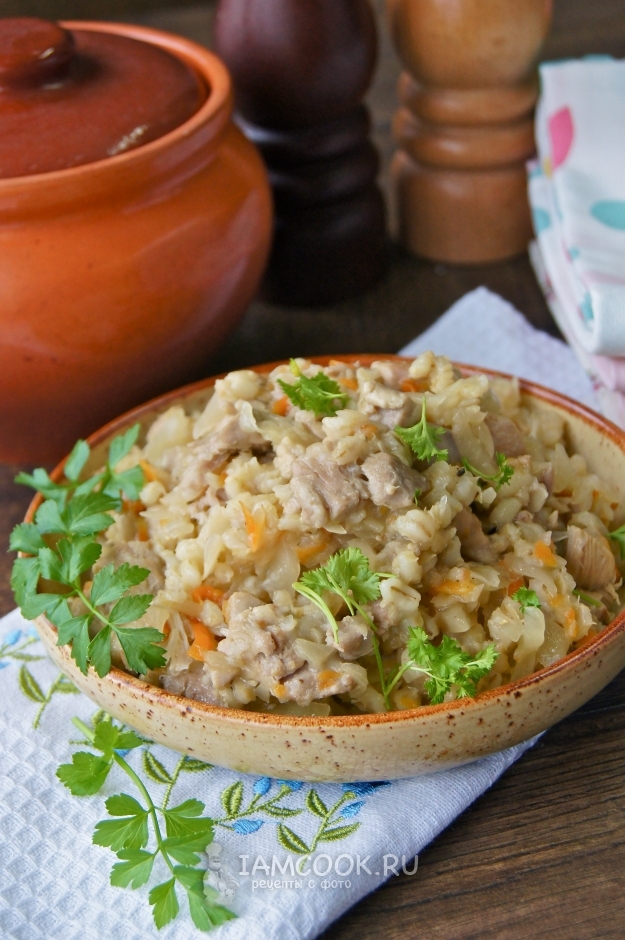 Выложила в глиняный горшок, можно в любую огнеупорную посуду с толстым дном.