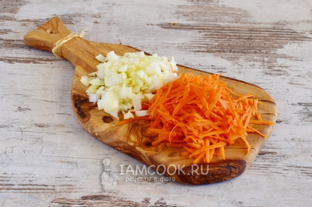 Лук репчатый нарезать кубиком. Морковь натереть на средней терке.