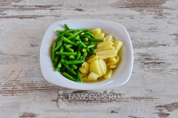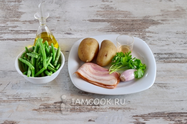 Подготовим все продукты по списку. Стручковая фасоль подойдет и свежая, и замороженная.