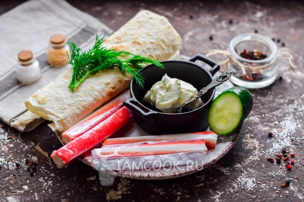 Предлагаю вам приготовить вкусный и аппетитный рулет из лаваша с крабовыми палочками и крем-сыром. Помимо прочего сюда отлично вписывается огурец, он придает закуске свежий оттенок. Крабовые палочки выбираем вкусные и качественные, можно взять как замороженные, так и охлажденные. Подавать к столу рулет можно в качестве закуски, также им можно просто перекусить - с чашечкой чая или кофе получится отличный вариант.