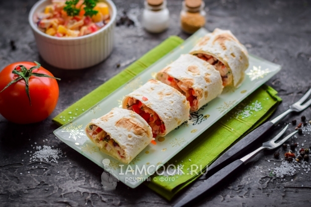 Рулет из лаваша с крабовыми палочками и болгарским перцем – один из вкусных и доступных вариантов закуски, которую можно предложить как гостям, так и домочадцам, в качестве сытного перекуса. Готовить рулет довольно просто, важно выбрать хороший лаваш и качественные крабовые палочки, добавить немного майонеза, желательно домашнего, для пикантности бросить мелко нарезанный красный лук. Все вместе ингредиенты прекрасно сочетаются по вкусу, так что рулет выходит бесподобным. Подавать рулет к столу можно с чаем или кофе, а можно как дополнение к основным блюдам.