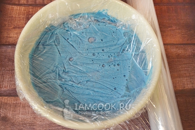 Накроем глазурь пленкой так, чтобы пленка соприкасалась с массой, и поставим в холодильник на несколько часов.