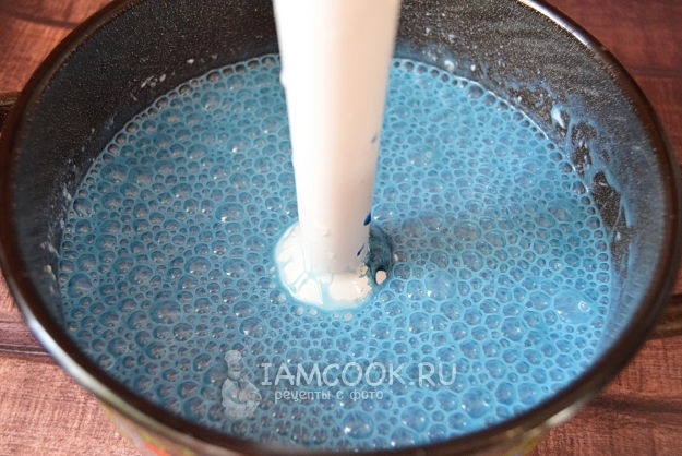 Пробьем массу блендером, стараясь разместить миску под наклоном, чтобы меньше образовывалось пузырьков.