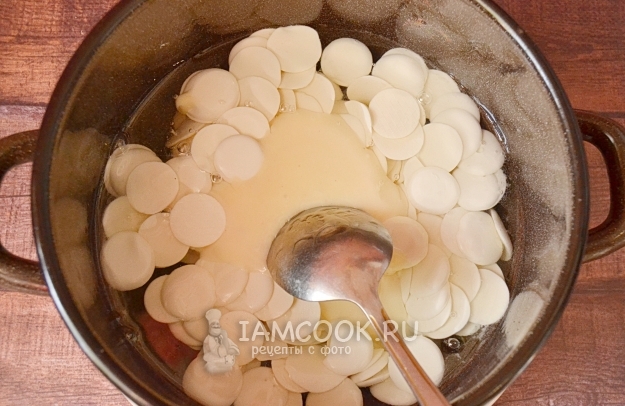 Добавим воду и на огне доведем до кипения, растворим все компоненты и снимем с огня.