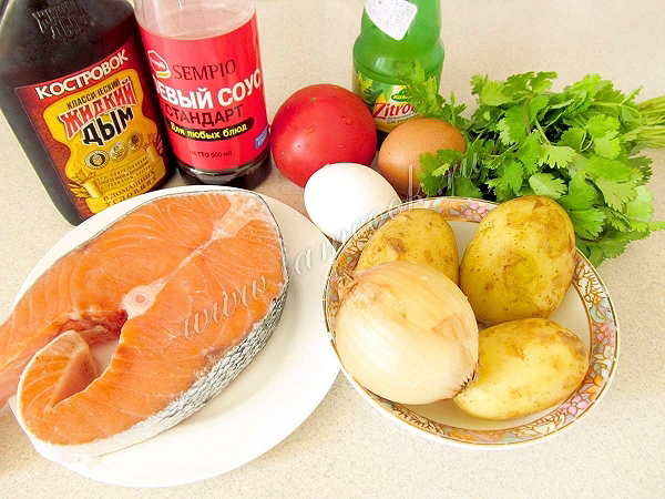 Этот салат можно приготовить с любой красной рыбой, желательно, чтобы она была горячего копчения. Но за неимением таковой, можно взять сырую рыбу, замариновать и обжаритье ее перед жаркой, сбрызнув несколькими каплями жидкого дыма. Готовлю этот салат не в первый раз и всегда он уходит на "ура".