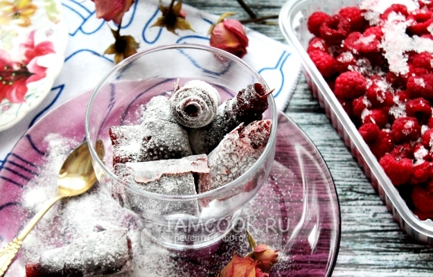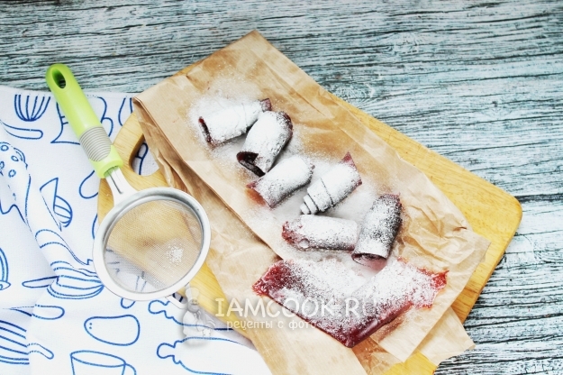 Скрутите полоски пастилы спиральками и присыпьте сахарной пудрой.