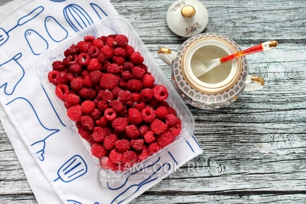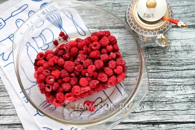 Для приготовления малиновой пастилы в домашних условиях возьмите коробку замороженной малины и сахар.