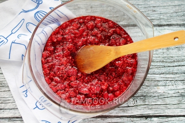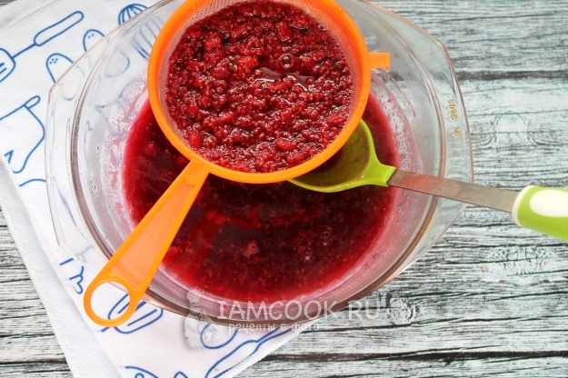 Теперь протрите размягченную малину сквозь сито.