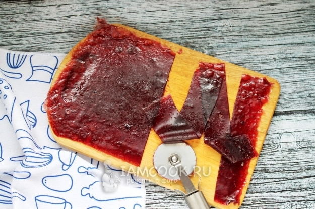 Нарежьте малиновую пастилу ножом для пиццы (очень удобно).