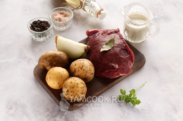 Чтобы приготовить отбивные из говядины с картошкой в духовке, возьмите продукты по списку.