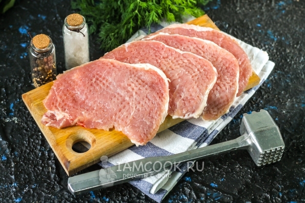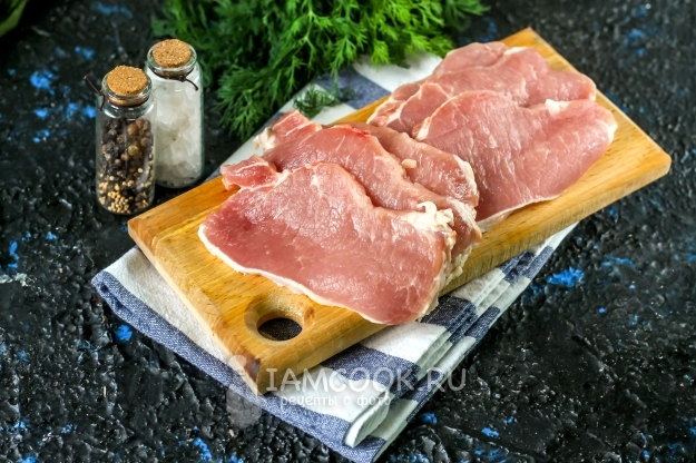 В это время промойте свиную мякоть, обсушите бумажными полотенцами и нарежьте ломтиками не более 1 см толщиной.