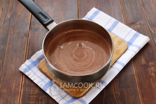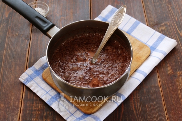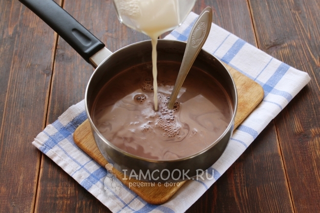 Доводим горячий шоколад до кипения и легкого загустения. Сразу снимаем с плиты.