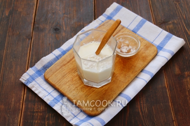 В отдельной емкости с оставшимся холодным молоком разводим крахмал, взбалтываем до однородности.