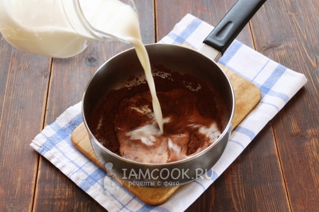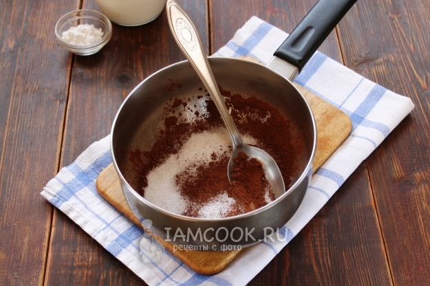 Сперва соединяем сухие компоненты: порошок какао и сахар — точную дозировку регулируйте по своему вкусу.