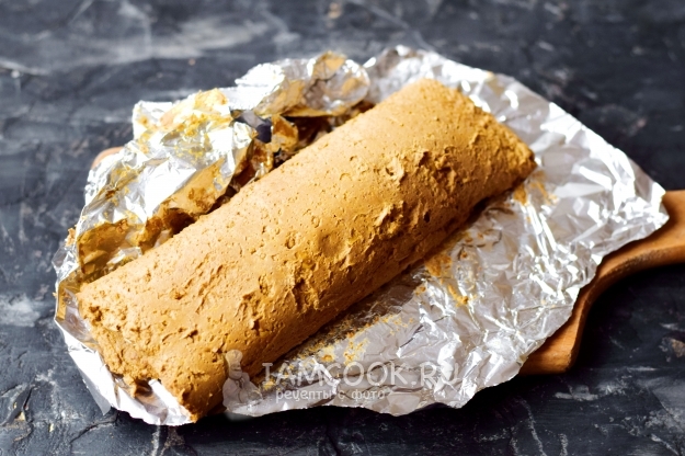 Сверните заготовку в плотный рулет, помогая фольгой.
