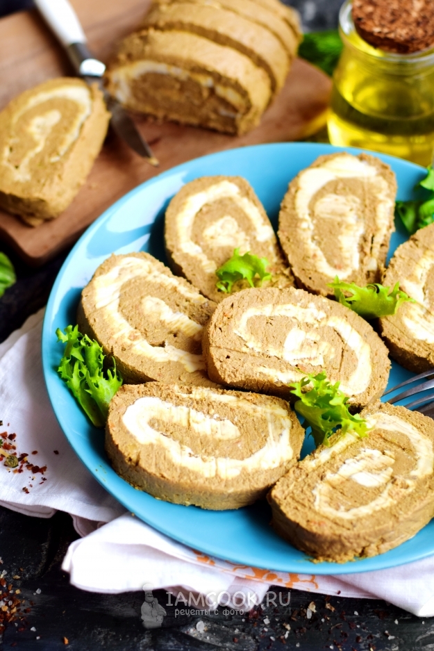Рулет получается очень красивым и аппетитным в разрезе, легко станет главным украшением праздничного стола. Несмотря на свой необычный внешний вид, рулет из говяжьей печени со сливочным маслом готовится очень быстро, рецепт содержит небольшое количество операций.