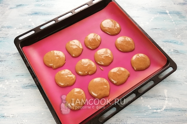Накладываем чайной ложкой наше тесто на силиконовый коврик на небольшом расстоянии друг от друга. Силиконовый коврик хорош тем, что к нему ничего не прилипает и мы можем не использовать масло для смазывания.