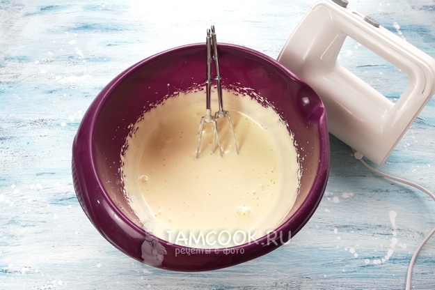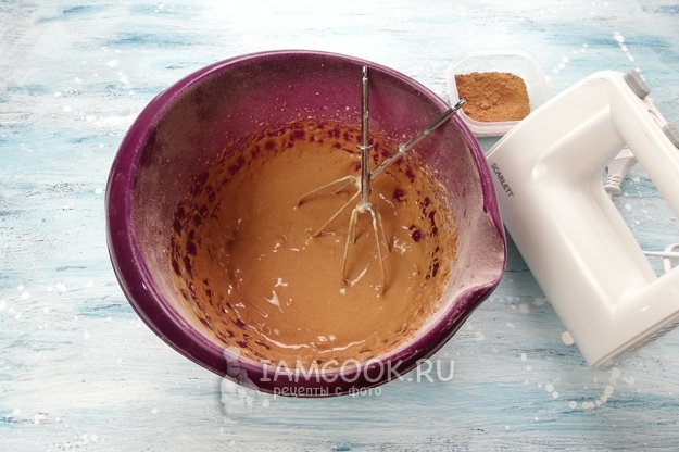 Теперь на низкой скорости взбиваем наше тесто, чтобы получилась однородная масса. Она должна быть не жидкой и не густой.