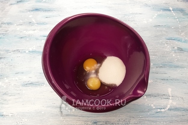 Вбиваем в миску яйца, добавляем к ним сахар и ванилин.