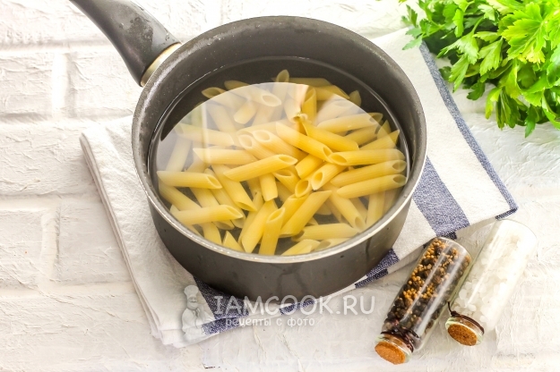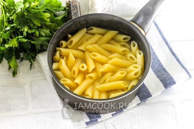 Вскипятите воду в кастрюле, казане или сотейнике, всыпьте в нее макароны и отварите в течение того времени, которое указано на упаковке изделий.